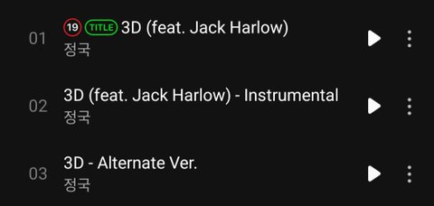 팝에 19달린 곡이 정국곡만 있음? 피쳐링 가수가 부른 랩을 빼고 듣고 싶음 정국 파트만 있는 3번을 들어