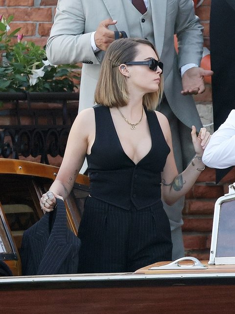 줄리아 가너와 모델 카라 델레바인도 도착