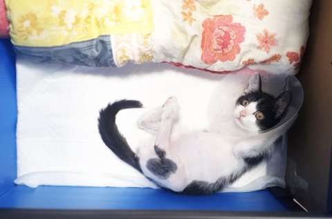 “관절이 일찍 굳기 때문에 새끼고양이는 깁스한 채로 2주를 꽉 채우기가 겁이 난다.”