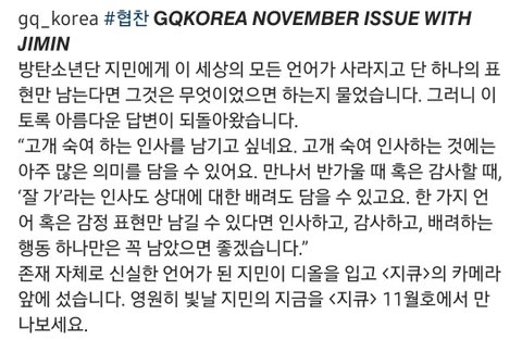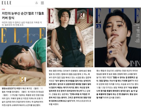 지민의 눈부신 순간! 엘르 11월호 커버 장식