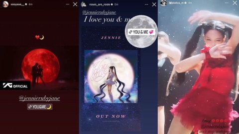 지수는 퍼포 비디오 썸네일 캡처해서 홍보하고 리사는 퍼포 영상 티비로 튼 거 폰으로 찍어서 업로드하기ㅋㅋㅋㅋㅋㅋ 꾸미기 잘하는 로제는 달 스티커까지 추가해서 홍보해줌