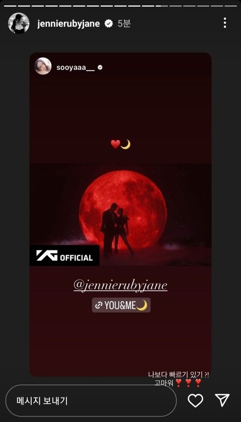 제니보다 먼저 발빠르게 홍보한 지수보고는 제니가 ''나보다 빠르기 있기?!'' 라고 답장함ㅋㅋㅋㅋㅋ