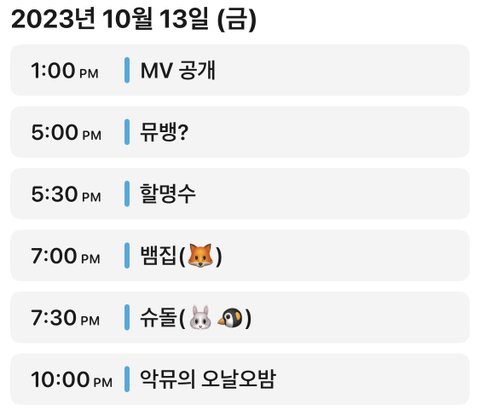 금요일 일정표 주움