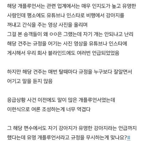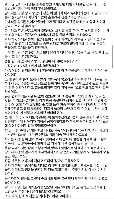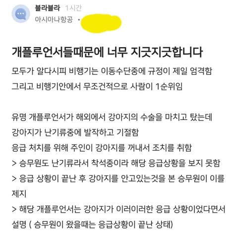 승무원이 감정치료사도 아니고 개 건강 걱정하면서 위로까지 해줘야되나ㅋㅋㅋㅋ
