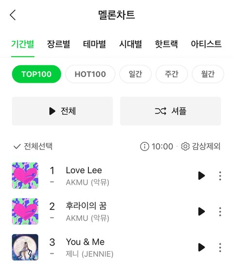 멜론 탑백 1 2 3위 찍은거 처음이지