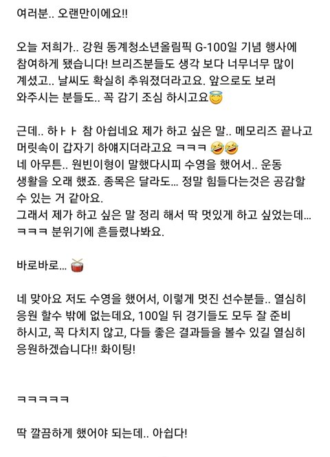 수영 선수 출신이라 형들이 멘트 해보라고 했는데