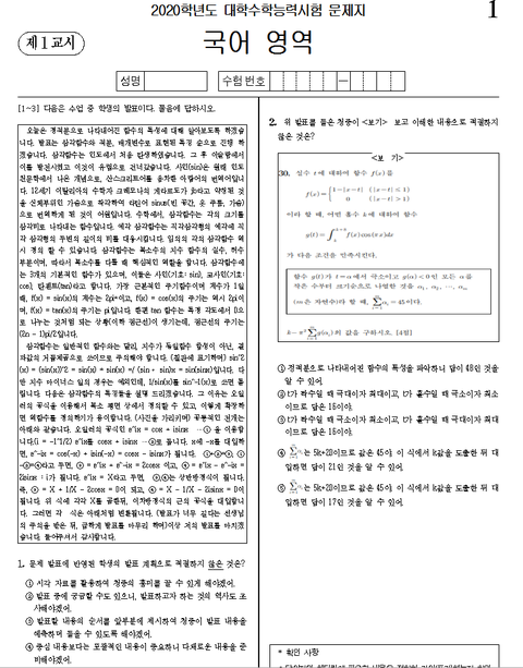 국어 사진처럼 나오고 1컷 70vs오늘처럼 나오고 1컷 100