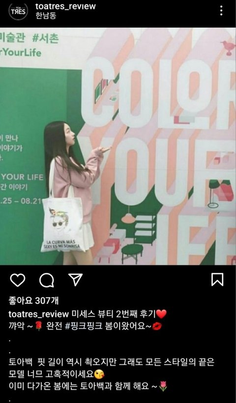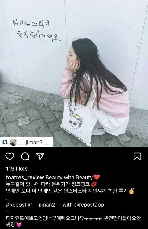 카리나 데뷔전에 에코백협찬 받았나봄? 와 신기하다 진짜 과사 예쁘더라....