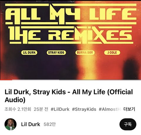 유튜브에 All My Life 오피셜 오디오 떴다