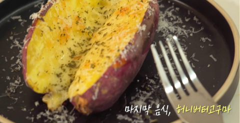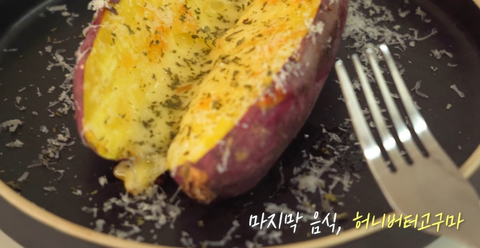 익은 고구마에 버터 넣고 꿀 넣고 치즈 넣고