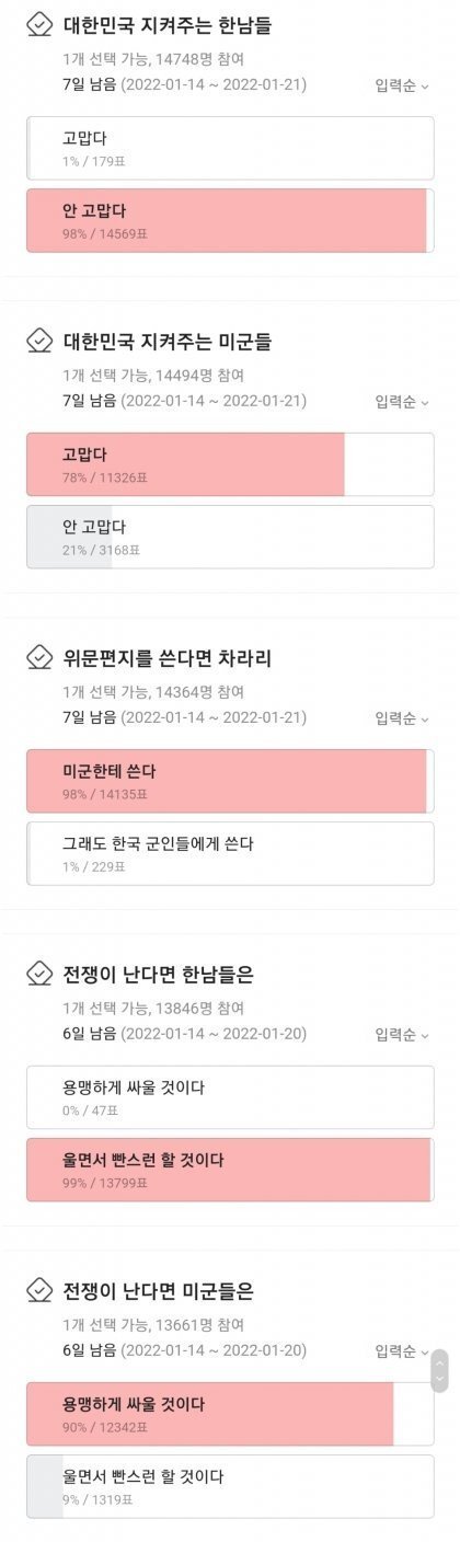 울면서 빤스런은,,솔직히 여자가 더 심하지 않을까 군인한테 고마움까진 아니어도 혐오표현은 솔직히 삼가하자 걔네도 억지로 끌려가는건데