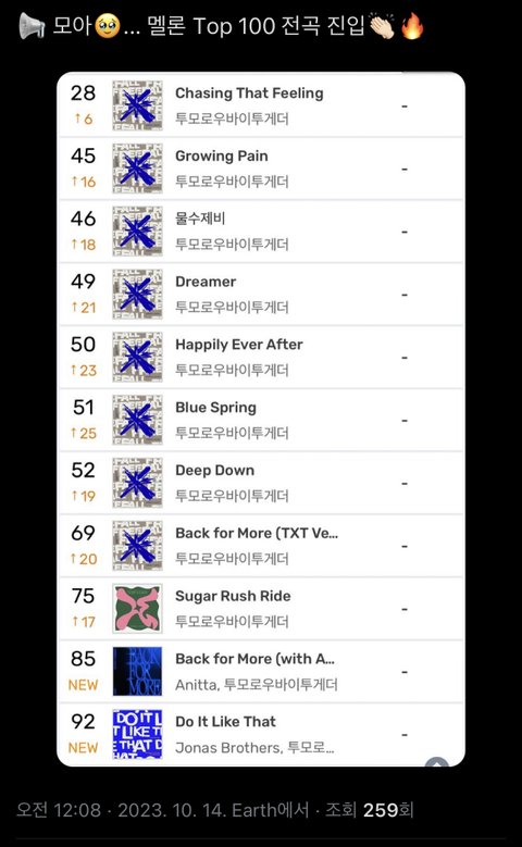 멜론 탑백 전곡 진입했대ㅜㅜㅜㅜㅜㅜㅜ