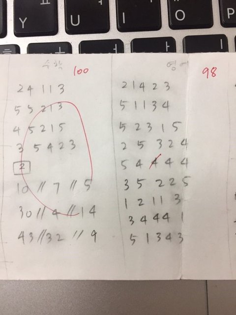 Q. 가채점표 쓸때 시험지 보면서 햇어, 아니면 자기가 오엠알에 마킹한거 보면서 했오?? 그리고 시간 안 모잘랏으..? 모고때 가채점표 쓰는 연습을 못해봐서..ㅠㅠ