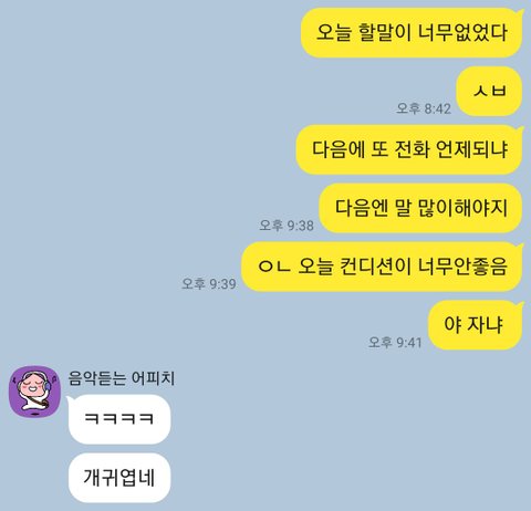 어제 전화 끊고나서 카톡으로 '오늘 할말이 너무없었다 ㅅㅂ'