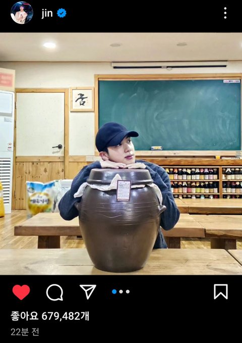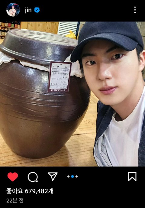 나 진짜 방탄 관심 없었는데 입대 후 진 사진마다 너무 멋있어서 몇 장 저장함. 저 항아리 옆에서 찍은 사진도 저장.