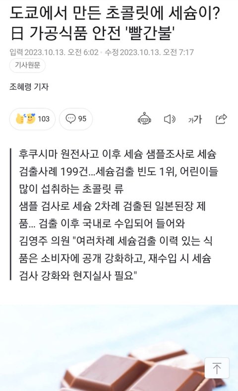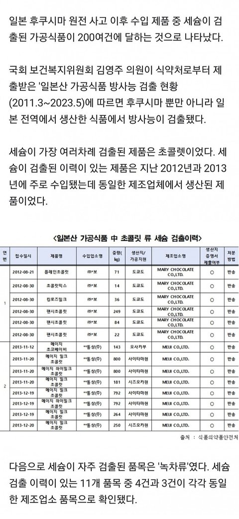 일본초코렛이 일본가공식품중 방사능검출1위에요