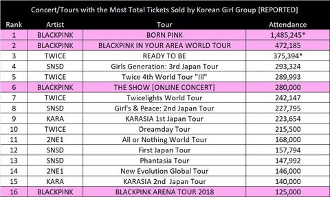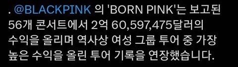 - 걸그룹 투어 역사상 최대 규모, 최다 수익을 기록한 ‘BORN PINK’ 투어