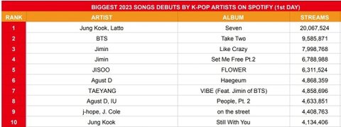 2023 kpop 스포티파이 진입 스트리밍수 여자 솔로 1위
