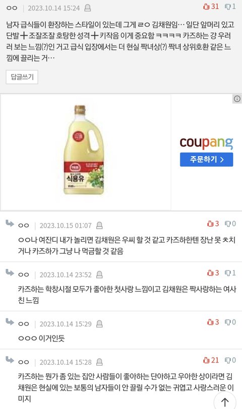 근데 막상 현실에선 김채원 정도 외모도 없음... 김채원도 현실에서 보면 다가가기 힘들걸?