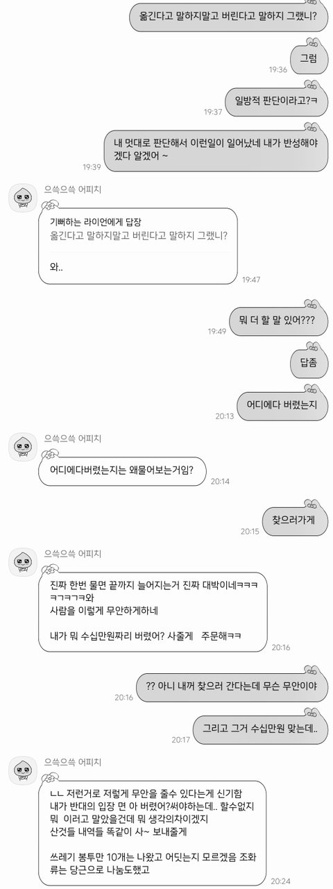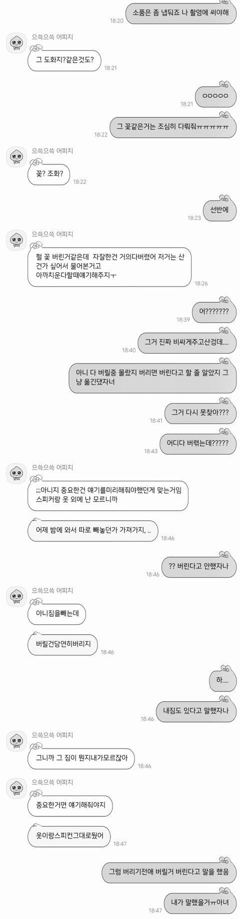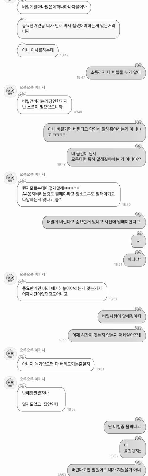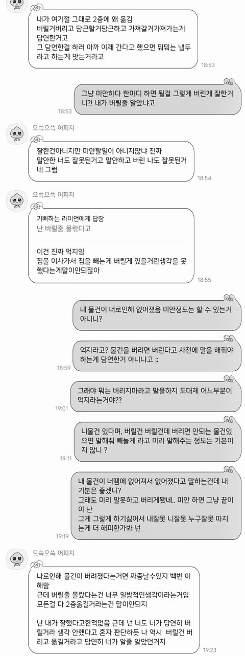 근데 아무 말도 없이 나의 물건을 버렸다네요 ^ㅁ^ 이게 저의 잘못인가요 ?