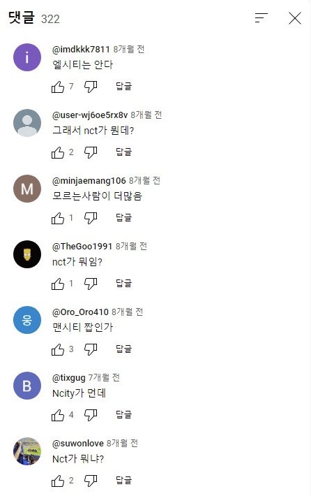 언제는 대중들은 엔시티를 모른다 또 언제는 엔시티 때문에 남돌노래 거르는 거다 ㅇㅈㄹ ㅋㅋㅋㅋㅋㅋ 타팬들 자격지심 오져서 엔시티 내려치기 개웃