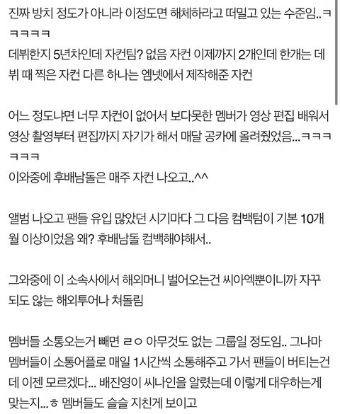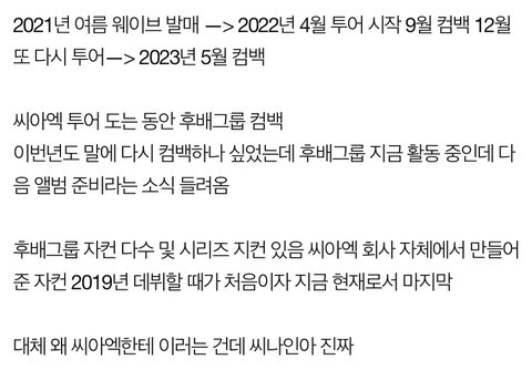 씨나인이 후배그룹만 계속 밀어주려는 느낌 들어서 오늘 새벽에 씨아엑 팬들 글 올라옴