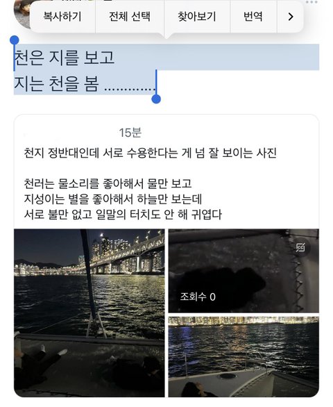 천은 지를 보고 지는 천을 본다