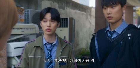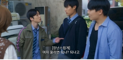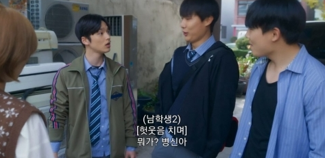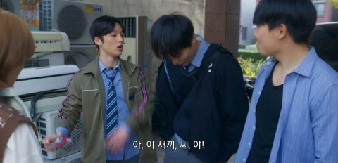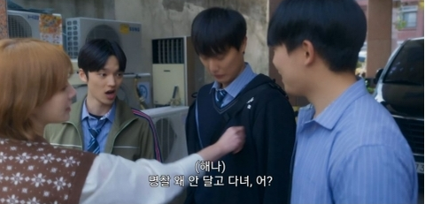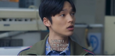 해나가 좀 무서워하는게 보이니까 갑자기 옆에 남자애 때림