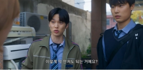 남의 학교 앞에서 교복 입고 담배 피우는 학생들 혼내주라는 신고 들어옴