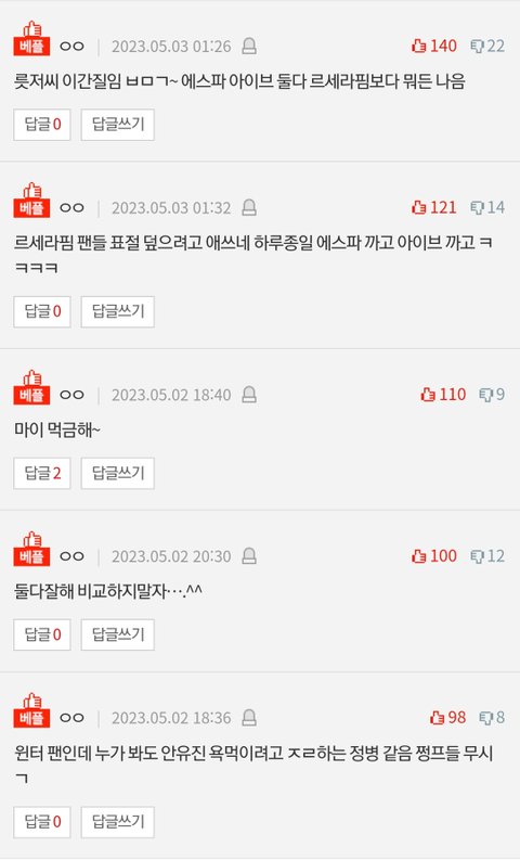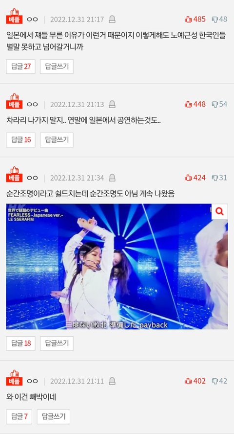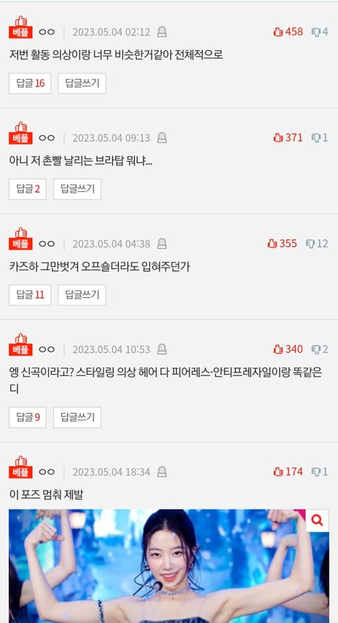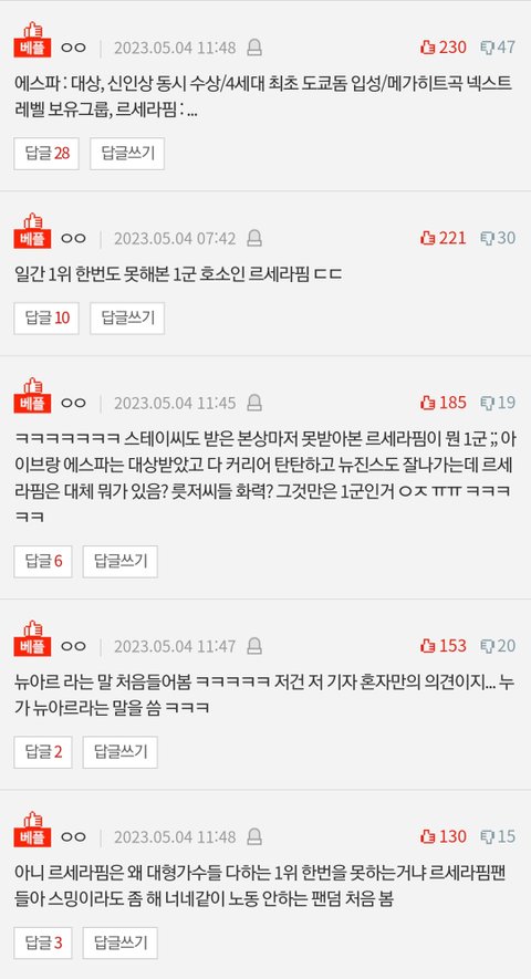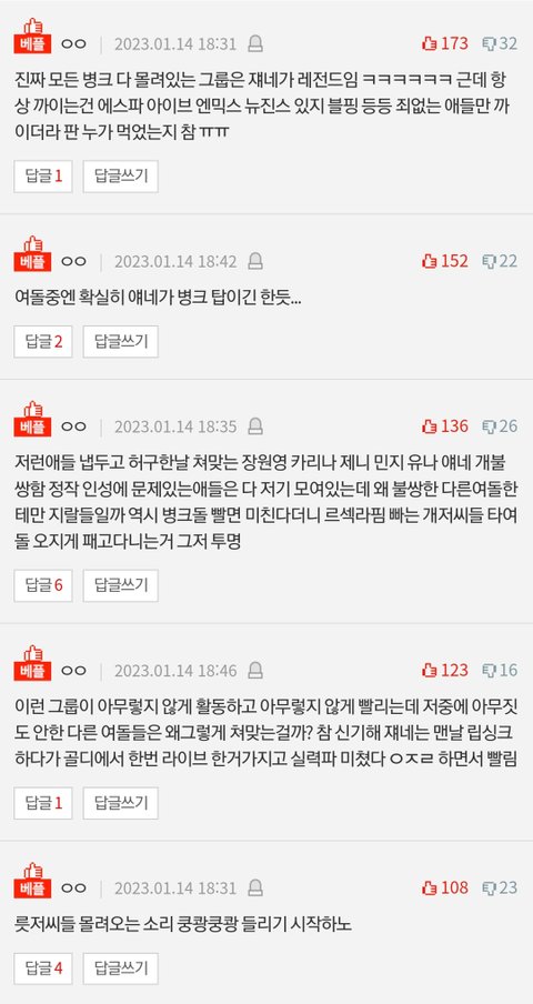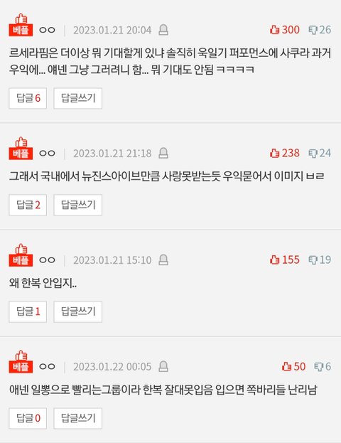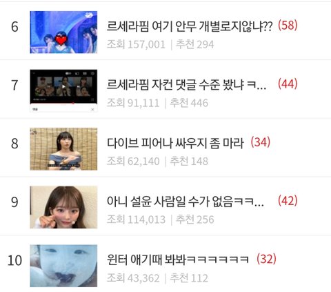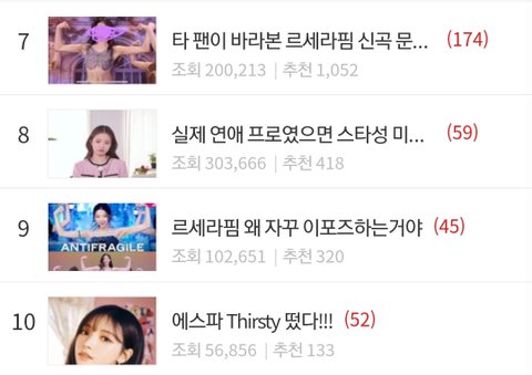 컴백하고 하루도 거르지않고 까는글이 톡선 도배됐는데 까는글이랑 댓글 추천수도 넘사인데 하이브빠가 먹었다는데 르세라핌은 왜 이런거임?
