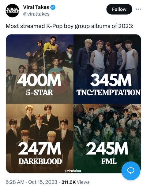 2023년 가장많이 스트림된 보이그룹앨범 탑4