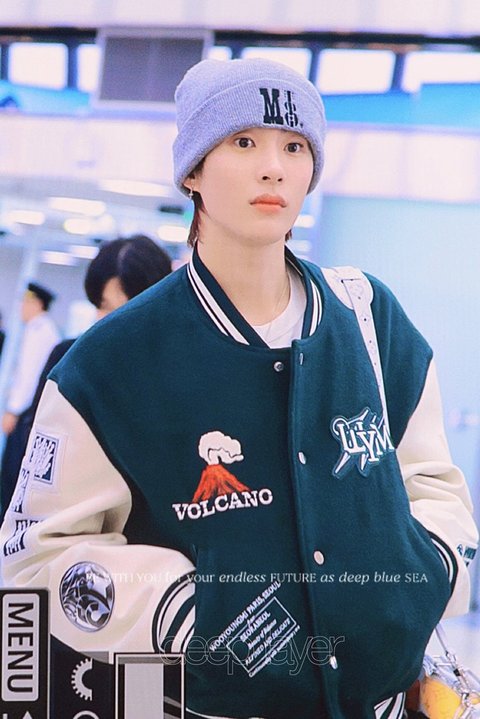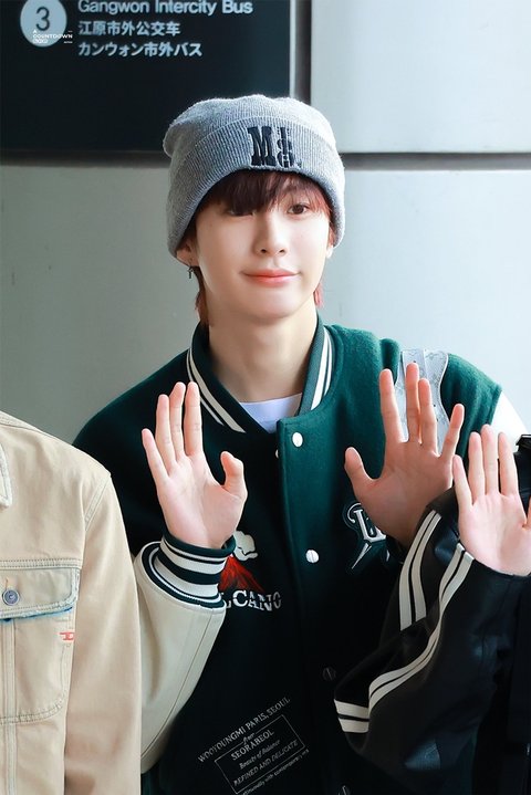 우영미 바시티 자켓 입은 앤톤