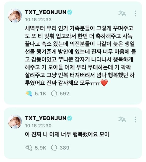 하나하나 감사할 줄 아는 마음을 가진 연준이 진짜 너무 착하고 마음이 예뻐 ㅠㅠ 저렇게 연준이 좋아하는거 보니까 더 열심히 응원하고싶고 더 기 살려주고싶어