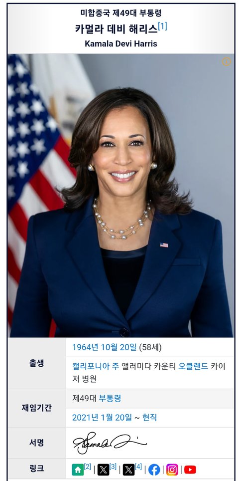 (사진1 설명) 카멀라 데비 해리스(Kamala Devi Harris) 미국 부대통령 <출처 : 네이버 나무위키>