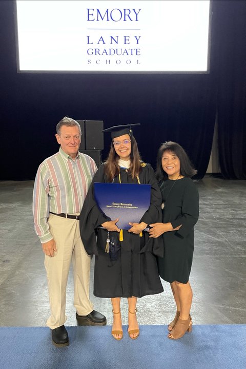 (사진2 설명) 미국인과 결혼 후 40년간 미국에서 살고계신 둘째 누나네집 가족사진 <최미희 누나(간호사 / 오른쪽), 미희 누나가 출산한 딸(의과대학 졸업사진 / 가운데), 미희 누나 남편(자형, 姊兄 / 왼쪽)>
