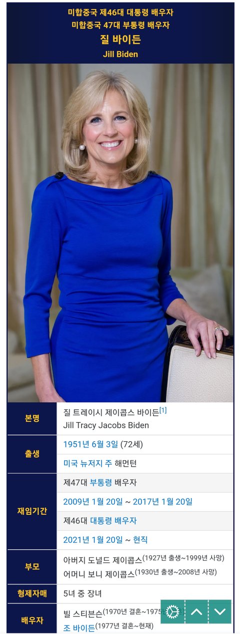 (사진7 설명) 영부인 질 바이든(Jill Biden) 여사 <출처 : 네이버 나무위키>