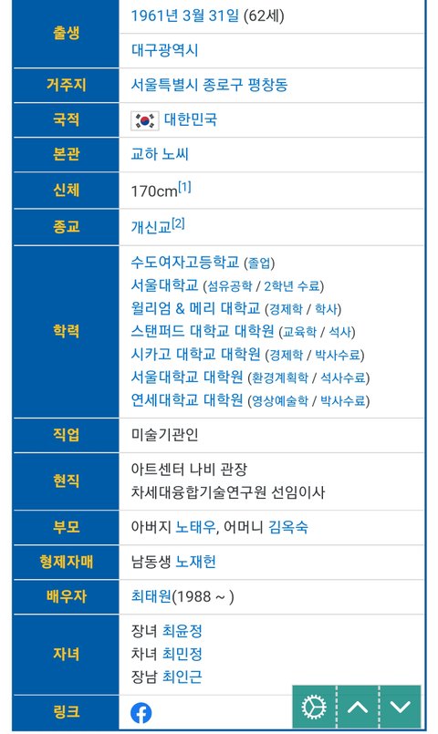 (사진9,10 설명) 노소영(盧素英, Roh Soh-yeong) 아트센터 나비 관장 <출처 : 네이버 나무위키>