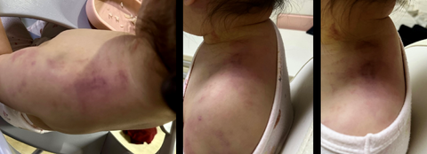 30분가량 압박하여아이의 목,어깨,팔에 피멍이