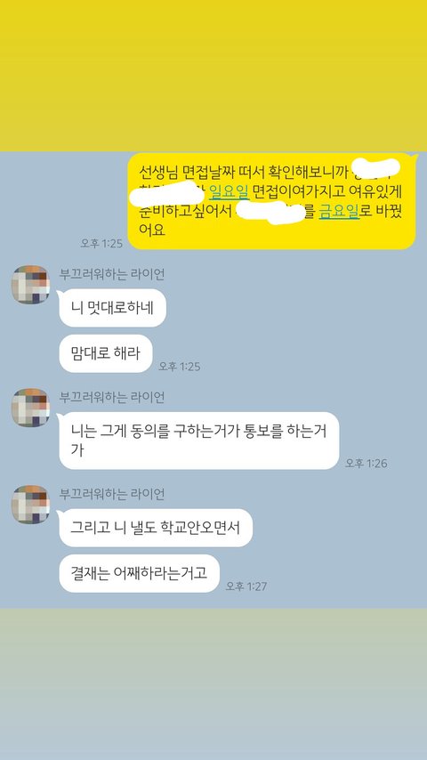 면접날짜를 쌤한테 허락맡고 정해야댐.?