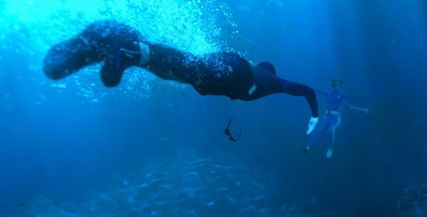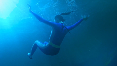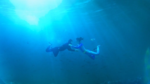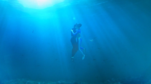 <7인의 탈출>에서 엄기준과 황정음의 수중키스씬