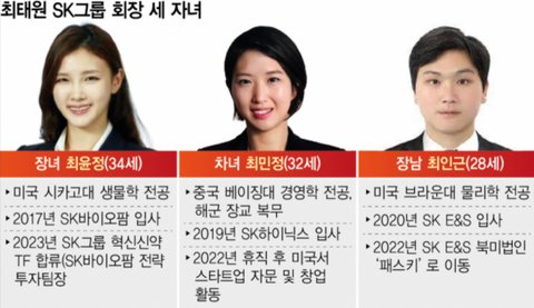 (사진6 설명) 최태원 SK그룹 회장 세 자녀 <(좌측부터) 장녀 최윤정, 차녀 최민정, 장남 최인근>