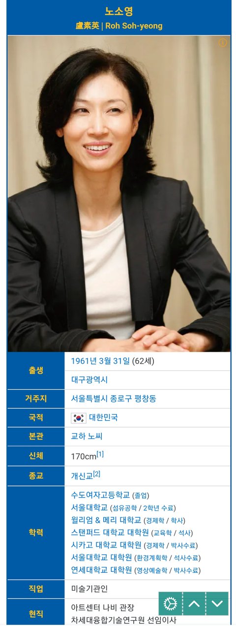 (사진7 설명) 노소영(盧素英, Roh Soh-yeong) 아트센터 나비 관장 <출처 : 네이버 나무위키>