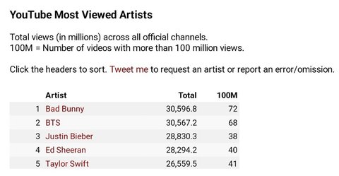 유튜브 역사상 아티스트 누적 스트리밍 1위였는데 방금 깨짐ㅠㅠㅠ 뮤스해!!!!