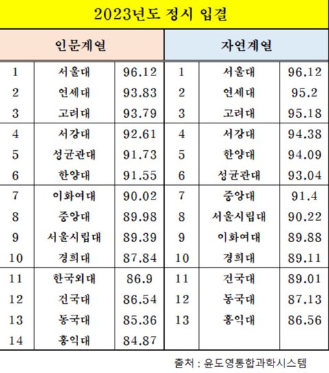 2023년 ‘진짜’ 대학 서열