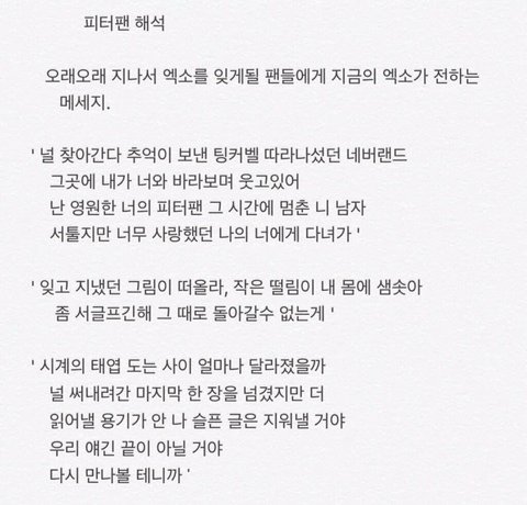 엑소 피터팬(2013) - 먼 훗날 엑소를 잊고 살아갈 엑소엘에게 전하는 메세지를 불러주는 노래