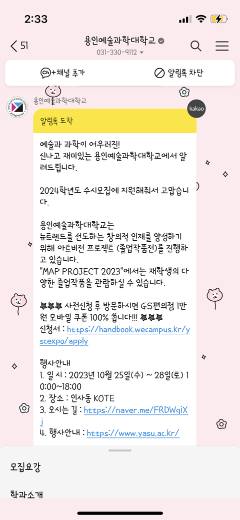 지잡 지원했는데 카톡왔음