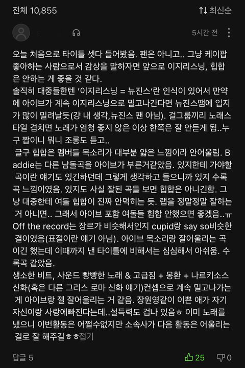 멜론 앨범 댓글보다가 발견한 댓인데 솔직히 ㅈㄴ 맞는말같음