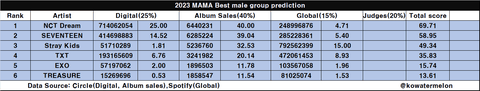 남자그룹상 엔드림 : 세븐틴 대상받으면 엔드림 무난하게 받을듯. 물론 마마 참석한다는 전제하에. 에스엠 작년처럼 안나오면 세븐틴한테 갈듯