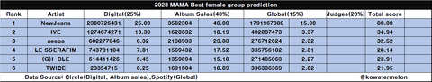 여자그룹상 뉴진스 : 2등하고 너무 차이나서 어쩔수없을듯