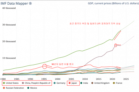 1995년도 버블 절정 이후 미국-일본을 연상(잃어버린 30년)시키는 형국이라고 함